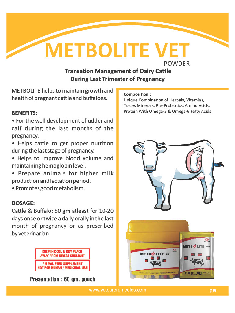 METBOLITE helps to maintain growth and health of pregnant cattle and buffaloes.